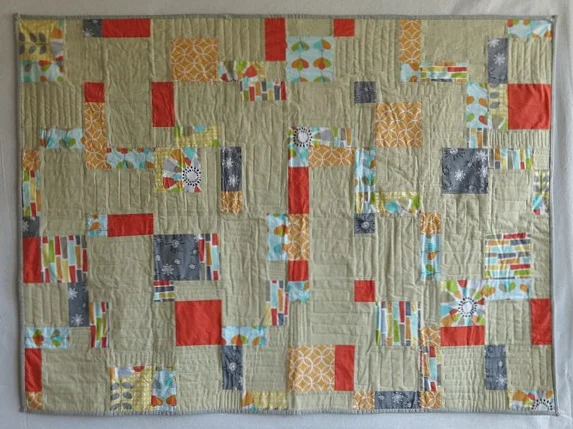 This year I was unable to attend the meeting of the Seacoast Modern Quilt Guild, of which I am a (frequently non-attending) member, when they showed their finished challenge projects. But I did finish one. I rather like these challenges because I work well with forced restriction of materials. I don't function well when sent to the fabric store with unlimited funds (as if...) and no particular idea in my head. But give me (literally hand me) a bunch of scraps (or fat eighths in this case) and I can fashion something. This time I played with a tutorial I found on St. Louis Folk Victorian for a Modernized Disappearing Nine Patch. Very cool...