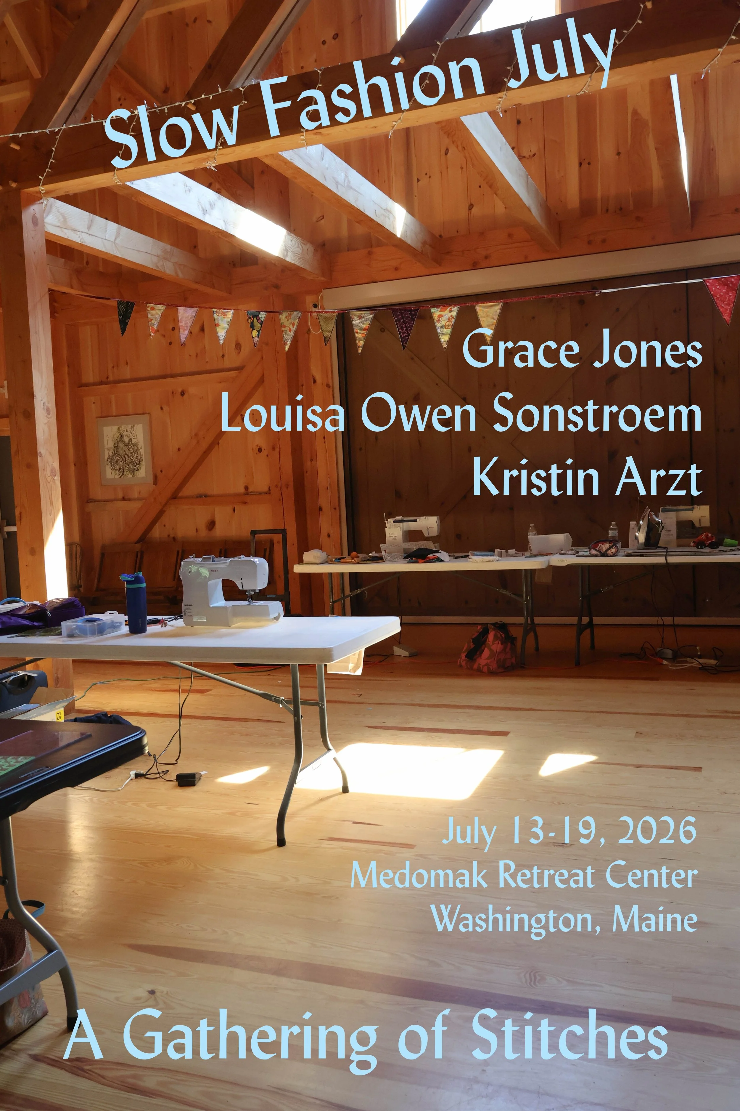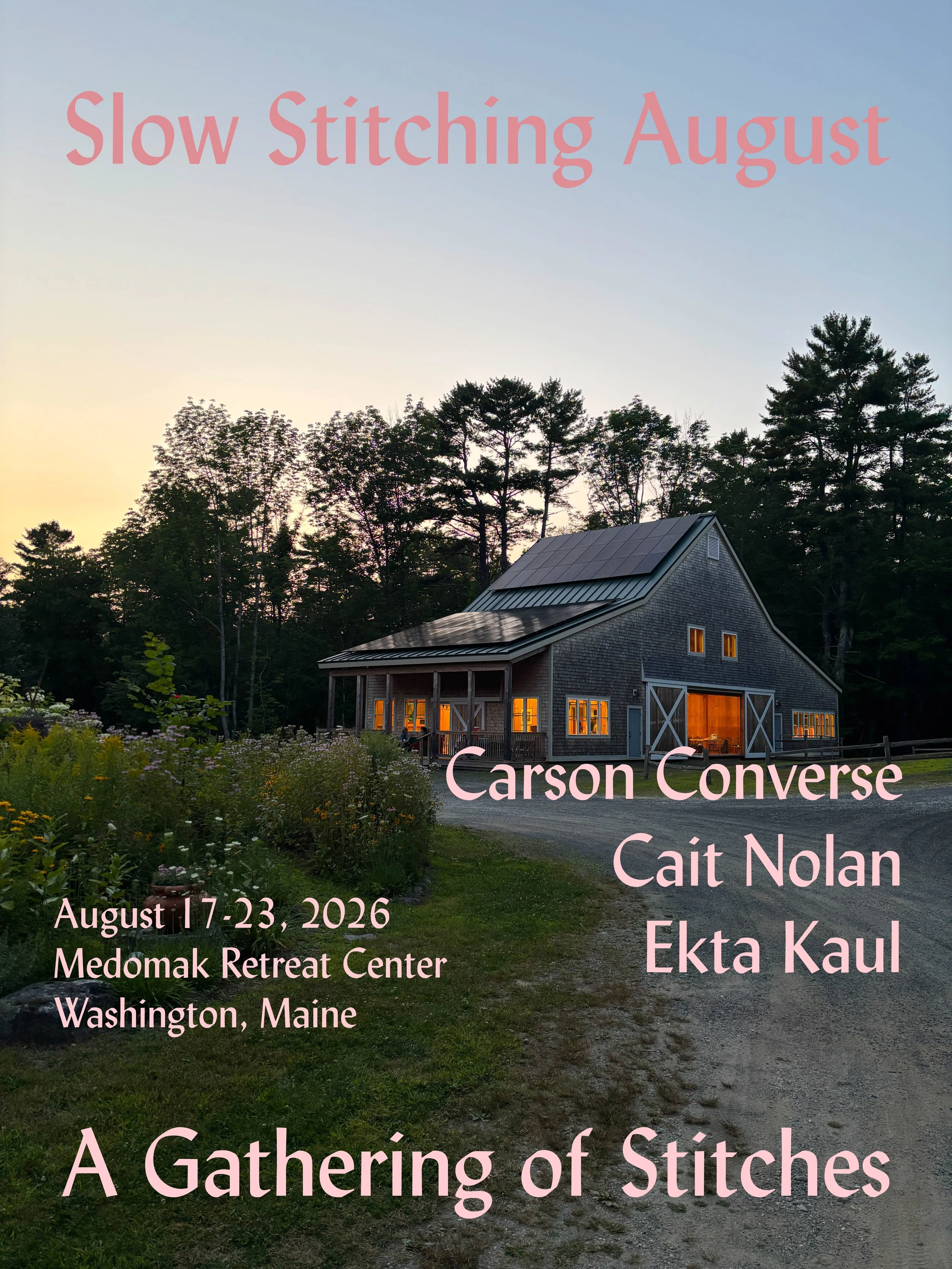 I am very proud and excited to announce the instructors and programming for the 2026 season of Maine Stitching Retreats. Each image below is a link to that retreat description. The information can also be accessed in the above drop down menu. Please give them all a good read through. They are chock-a-block full of useful and pertinent information. I look forward to seeing some of you this Summer here in Maine….!
